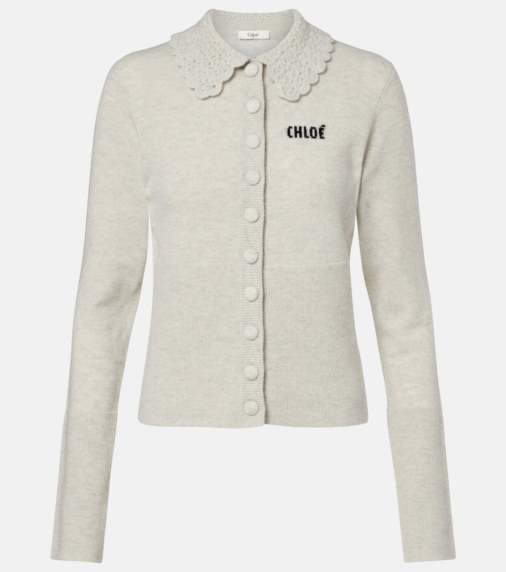 Renowned for its free-spirited aesthetic, Chloe's designs are characterized by romance with a Parisian flair. This cardigan is made from pure wool with a scalloped collar and a contrasting logo on the chest. Product Details - Material: 100% wool - Care instructions: dry clean - Made in China - Color: grey - Designer color name: Sweet Grey - Item color: gray - Closure: buttoned front - Cuff: ribbed - Hem: ribbed - Item number: P01130741 Size & Fit - True to size - Straight fit - Stretchy fabric - Falls to the hip - The model seen in the picture is 178cm-5'10" and wearing a size XS