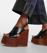 Product Details - Upper: leather - Lining: leather - Sole: leather insole, rubber sole - Toe shape: round open toe - Made in Italy - Includes: shoe box, dust bag - Designer color name: Black - Closure: buckle fastening - Hardware color: gold - Item number: P00921787 Size & Fit - True to size - Half sizes please take the next size up - European sizes - 6cm-2.5" platform (size EU 38) - 14,5cm-5.5" wedge heel (size EU 38)