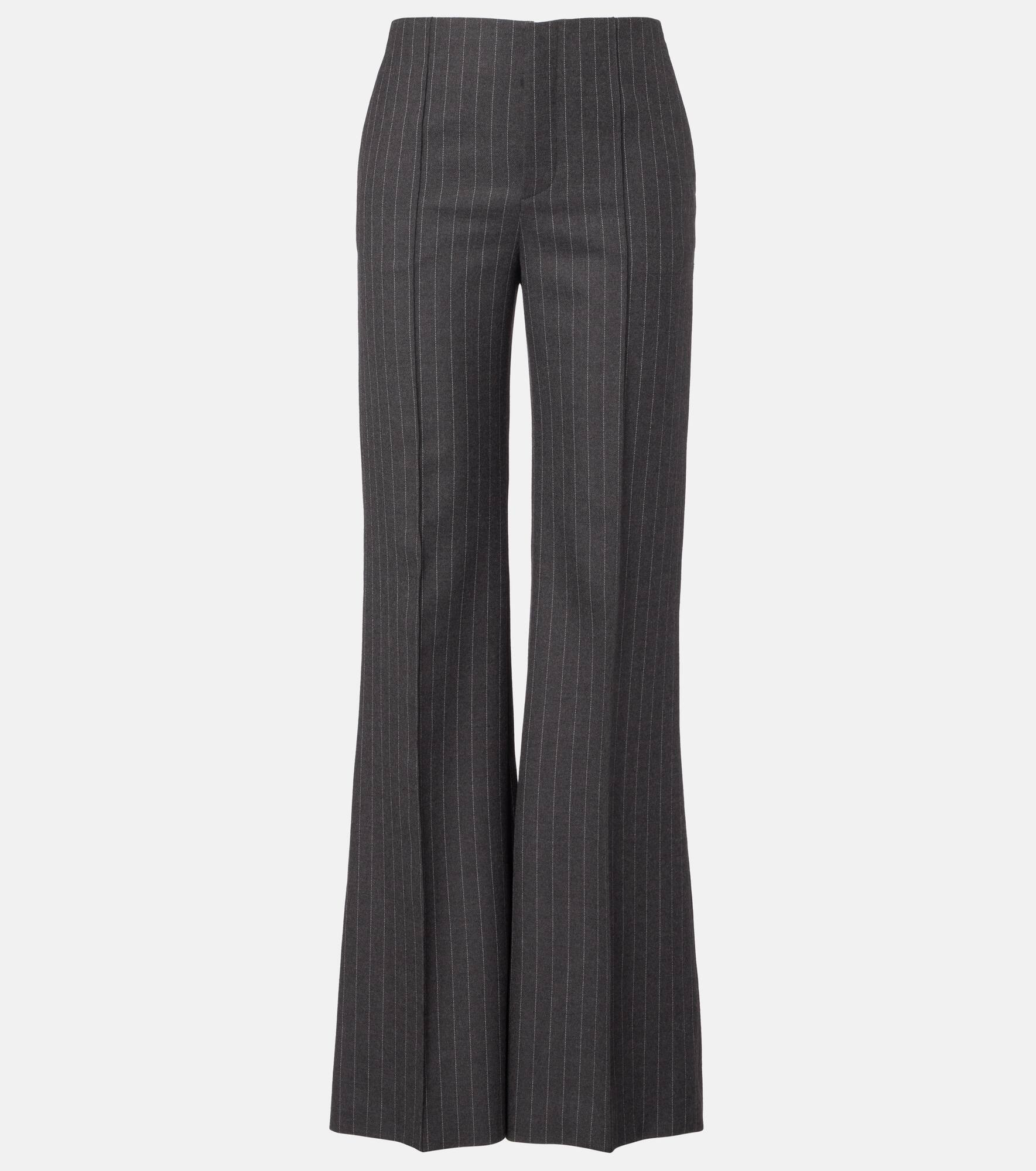 Renowned for its free-spirited aesthetic, Chloe's designs are characterized by romance with a Parisian flair. These wide-leg pants are made from soft virgin wool and feature a high-rise waistline and elegant pinstripes. Product Details - Material: 100% virgin wool - Care instructions: dry clean - Made in Italy - Designer color name: Charcoal Grey - Item color: gray - Pocket lining: 100% silk - Contains non-textile parts of animal origin - Closure: zipper fly, button and hook fastenings - Pockets: slant pockets, back pockets - Item number: P01089628 Size & Fit - True to size - Non-stretchy fabric - Wide-leg - High-waisted - The model seen in the picture is 178cm-5'10" and wearing a size FR 36