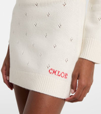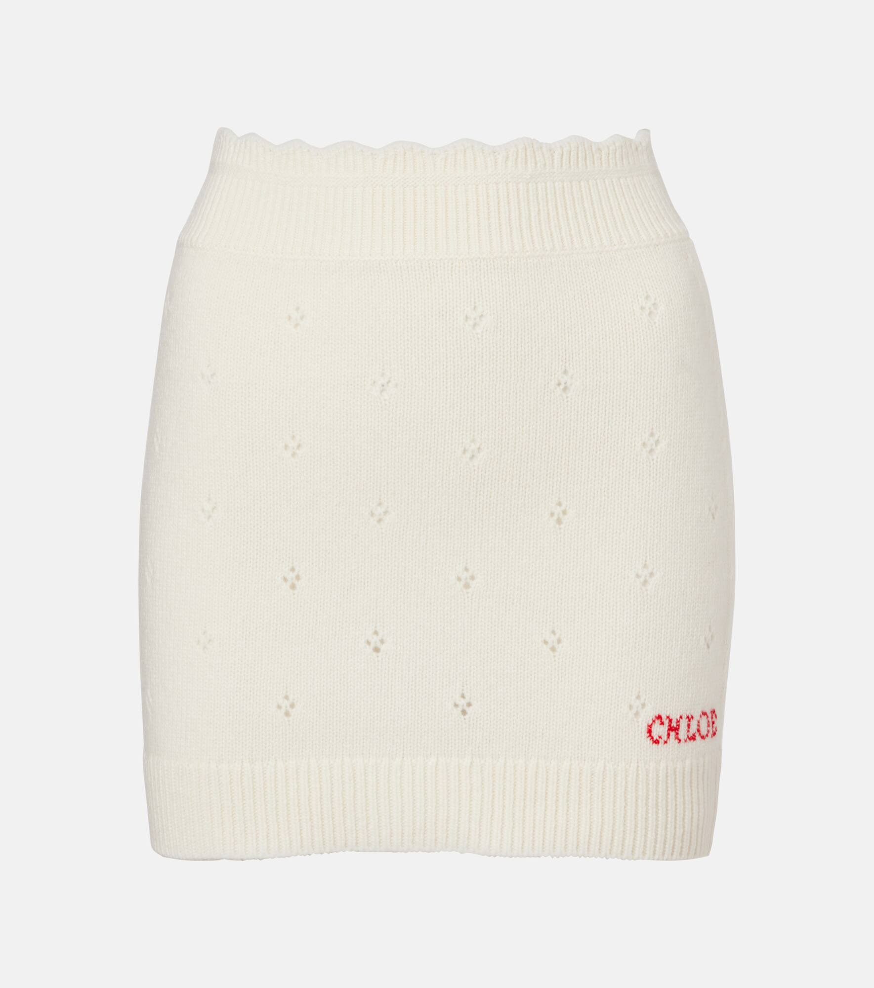 Complete your wardrobe with charming essentials like this Chloe miniskirt. Crafted from wool and cashmere, the design features an elasticated waistband, delicate pointelle detailing, and a contrasting logo on the front. Product Details - Material: 71% wool, 29% cashmere - Care instructions: dry clean - Made in China - Designer color name: Iconic Milk - Item color: white - Trim: 64% wool, 25% cashmere, 10% polyamide, 1% elastane - Elasticated waistband - Hem: ribbed - Item number: P01089597 Size & Fit - True to size - Elasticated waist - Stretchy fabric - High-waisted - The model seen in the picture is 178cm-5'10" and wearing a size XS
