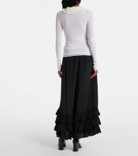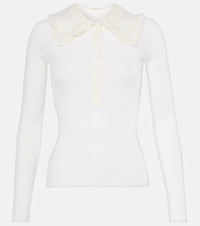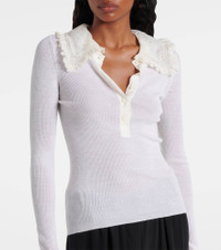 Renowned for its free-spirited aesthetic, Chloe's designs are characterized by romance with a Parisian flair. Designed with a close-fitting silhouette, this wool Henley shirt is adorned with a lace-trimmed collar and a silk button placket. Product Details - Material: 100% wool - Care instructions: dry clean - Made in Madagascar - Designer color name: Iconic Milk - Item color: white - Lace: 100% polyamide - Trim: 93% polyester, 5% viscose, 2% polyamide - Material II: 100% silk - Contains non-textile parts of animal origin - Closure: partially buttoned front - Item number: P01067876 Size & Fit - True to size - Sheer - Fitted - Stretchy fabric - Falls to the hip - The model seen in the picture is 178cm-5'10" and wearing a size FR 36