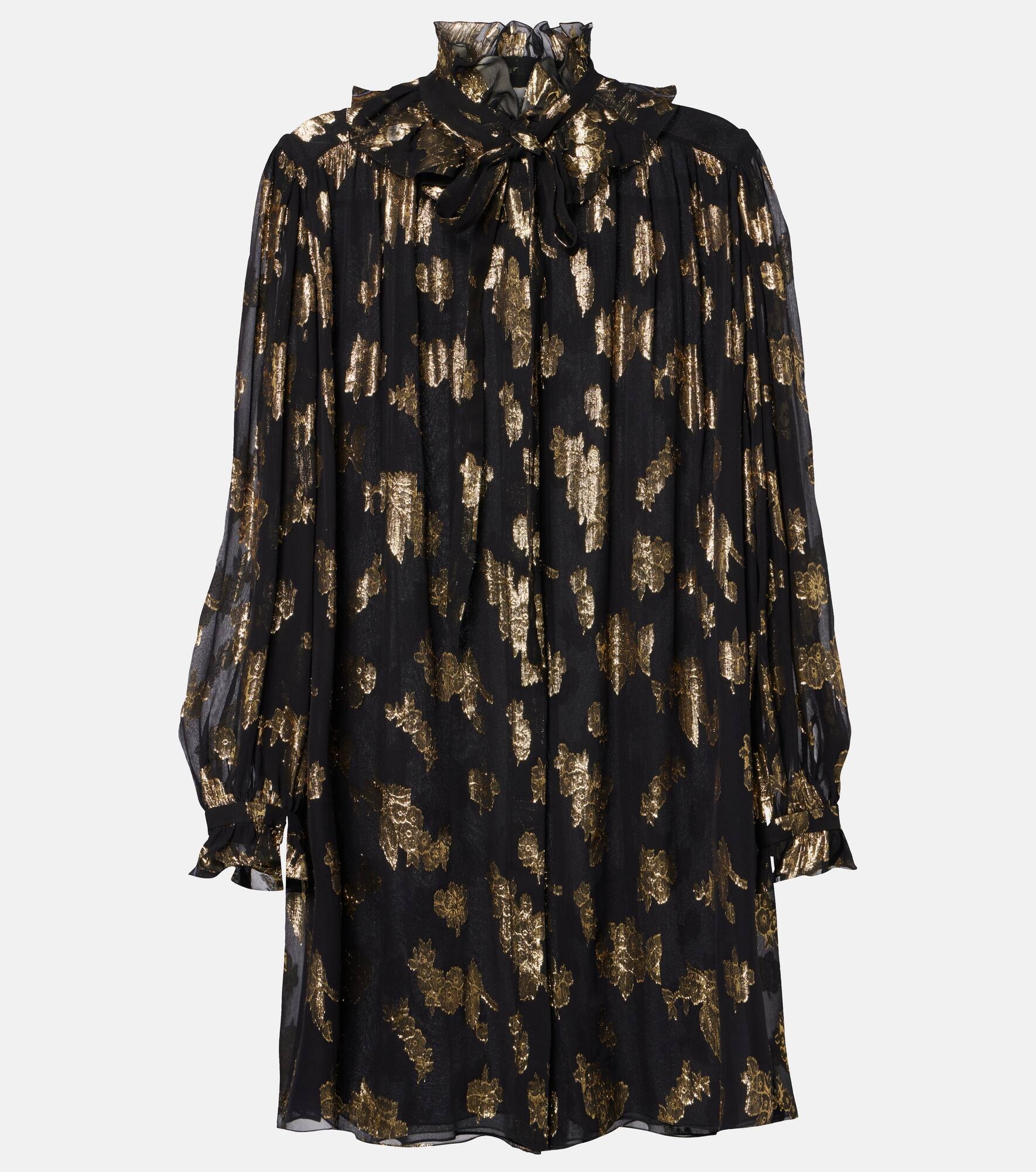 TIE-FRONT MINI DRESS IN SILK JACQUARD & LUREX