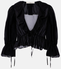 CROPPED V-NECK RUFFLE TOP IN SILK GEORGETTE & LACE
