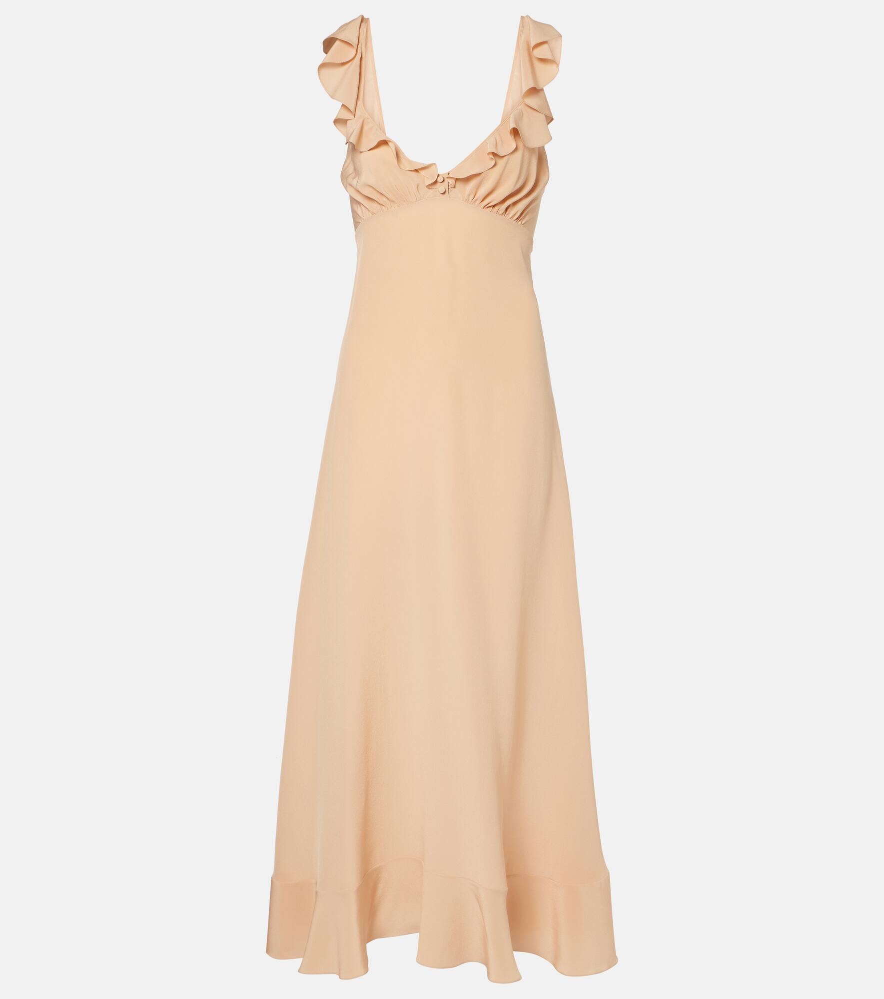 Ruffled silk crêpe de chine maxi dress