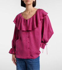 ROUND-NECK RUFFLE BLOUSE IN SILK JACQUARD