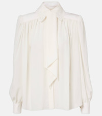GATHERED SCARF-TIE BLOUSE IN CRÊPE DE CHINE & LACE