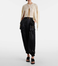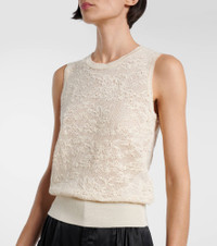 If you are looking for a refined aesthetic, this Chloe set offers an effortless styling duo: a tank top and a cardigan. Made from cotton and silk, these pieces feature ribbed trims and delicate needlework detailing. Product Details - Material: 66% cotton, 34% silk - Care instructions: dry clean - Made in China - Designer color name: Iconic Milk - Item color: white - Contains non-textile parts of animal origin - Two-piece set - Closure: buttoned front - Collar: crewneck - Cuff: ribbed - Hem: ribbed - Item number: P01067923 Size & Fit - True to size - Cinched waist - Stretchy fabric - Falls to the hip - The model seen in the picture is 178cm-5'10" and wearing a size XS