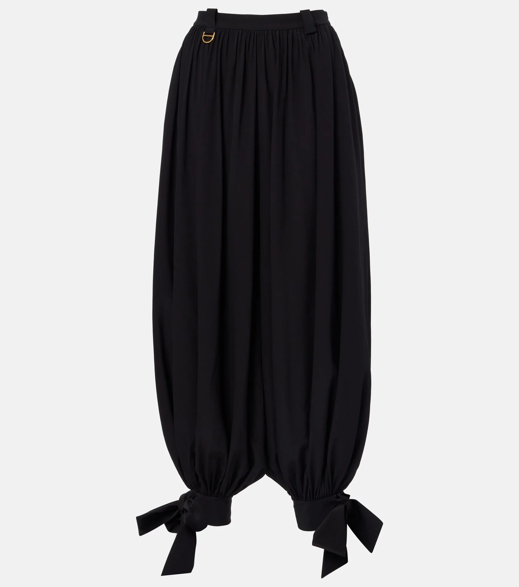 Renowned for its free-spirited aesthetic, Chloe's designs are characterized by romance with a Parisian flair. Crafted from flowing silk crepe de chine, these voluminous balloon pants feature self-tie ankle cuffs and a separate shorts lining. Product Details - Material: 100% silk - Care instructions: dry clean - Made in Madagascar - Color: black - Designer color name: Black - Lining: 90% acetate, 10% silk - Hardware color: gold - Belt loops - Pockets: slant pockets - Closure: concealed zipped side - Self-tie cuffs - Item number: P01152846 Size & Fit - True to size - Non-stretchy fabric - Wide-leg - High-waisted - The model seen in the picture is 178cm-5'10" and wearing a size FR 36