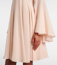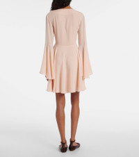 Renowned for its free-spirited aesthetic, Chloe's designs are characterized by romance with a Parisian flair. This minidress is crafted in France from silk georgette and features trumpet sleeves and a scoop neckline. Product Details - Material: 100% silk - Care instructions: dry clean - Made in France - Designer color name: Delicate Pink - Item color: pink - Lining: 68% acetate, 32% silk - Closure: zipped side - Item number: P01089579 Size & Fit - True to size - Cinched waist - Non-stretchy fabric - The model seen in the picture is 178cm-5'10" and wearing a size FR 36