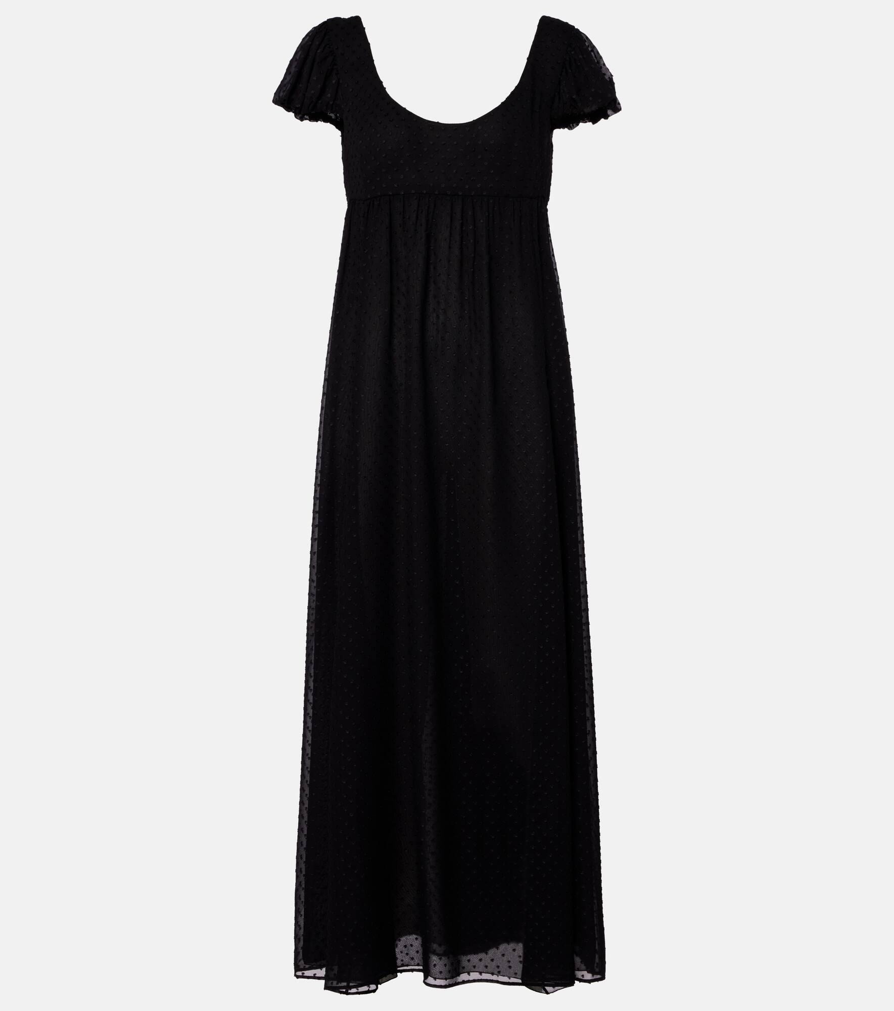 Renowned for its free-spirited aesthetic, Chloe's designs are characterized by romance with a Parisian flair. This silk point d'esprit maxi dress comes with a dotted pattern, a flattering empire waistline, and puff sleeves. Product Details - Material: 100% silk - Care instructions: dry clean - Made in France - Designer color name: Black - Item color: black - Lining: 68% silk, 32% acetate - Closure: zipped back, hook fastening - Item number: P01067897 Size & Fit - Fits large to size - we recommend trying one size smaller - Cinched waist - Non-stretchy fabric - The model seen in the picture is 178cm-5'10" and wearing a size FR 34