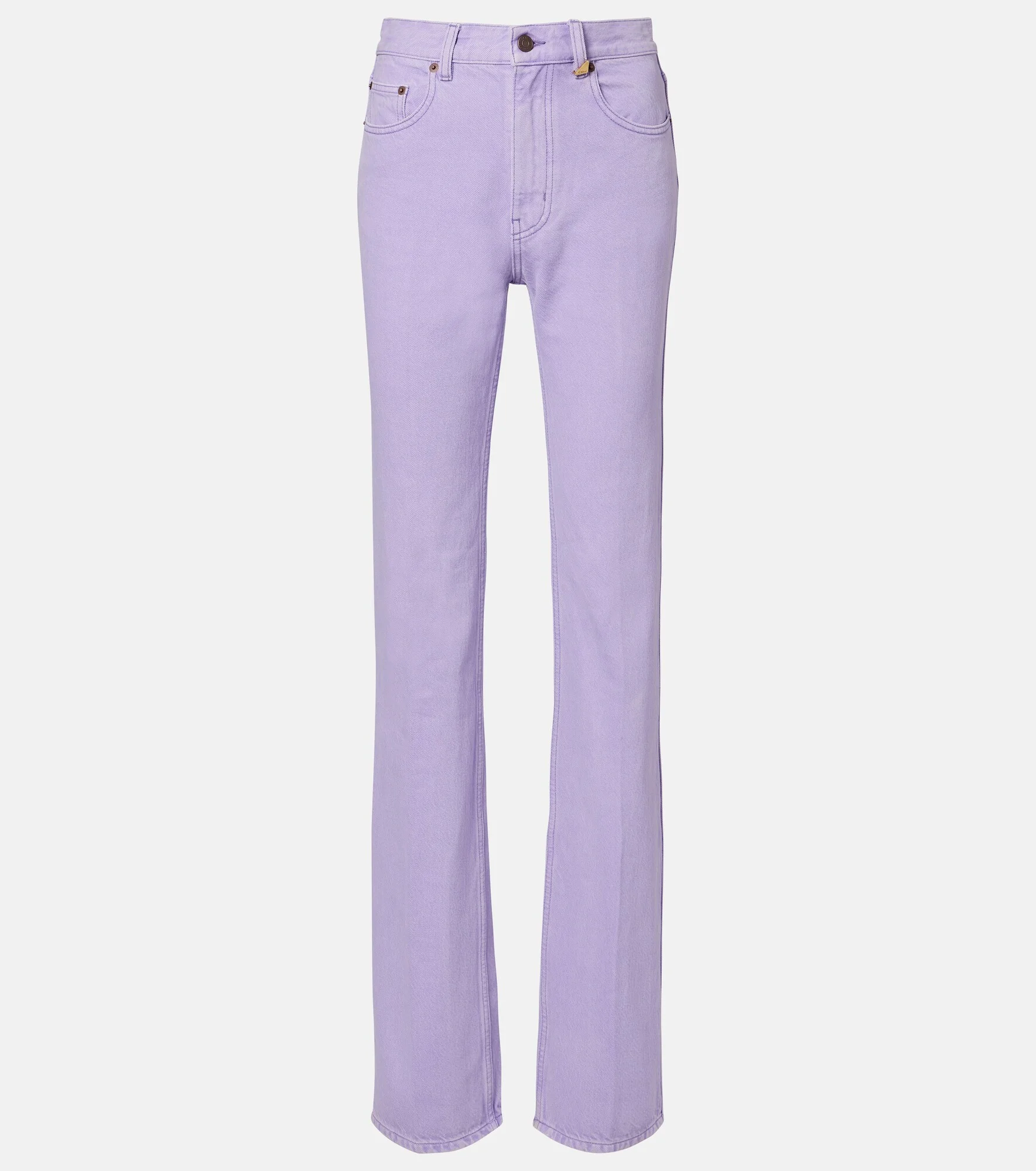 Renowned for its free-spirited aesthetic, Chloe's designs are characterized by romance with a Parisian flair. These jeans are crafted from purple denim into a straight-leg silhouette. Product Details - Material: 100% cotton - Care instructions: dry clean - Made in Italy - Color: purple - Designer color name: Lavender Fog - Pocket lining: 65% polyester, 35% cotton - Closure: zipper fly, button fastening - Belt loops - Pockets: five pockets - Item number: P01152809 Size & Fit - Non-stretchy fabric - Straight leg - Low-rise - The model seen in the picture is 178cm-5'10" and wearing a size 30