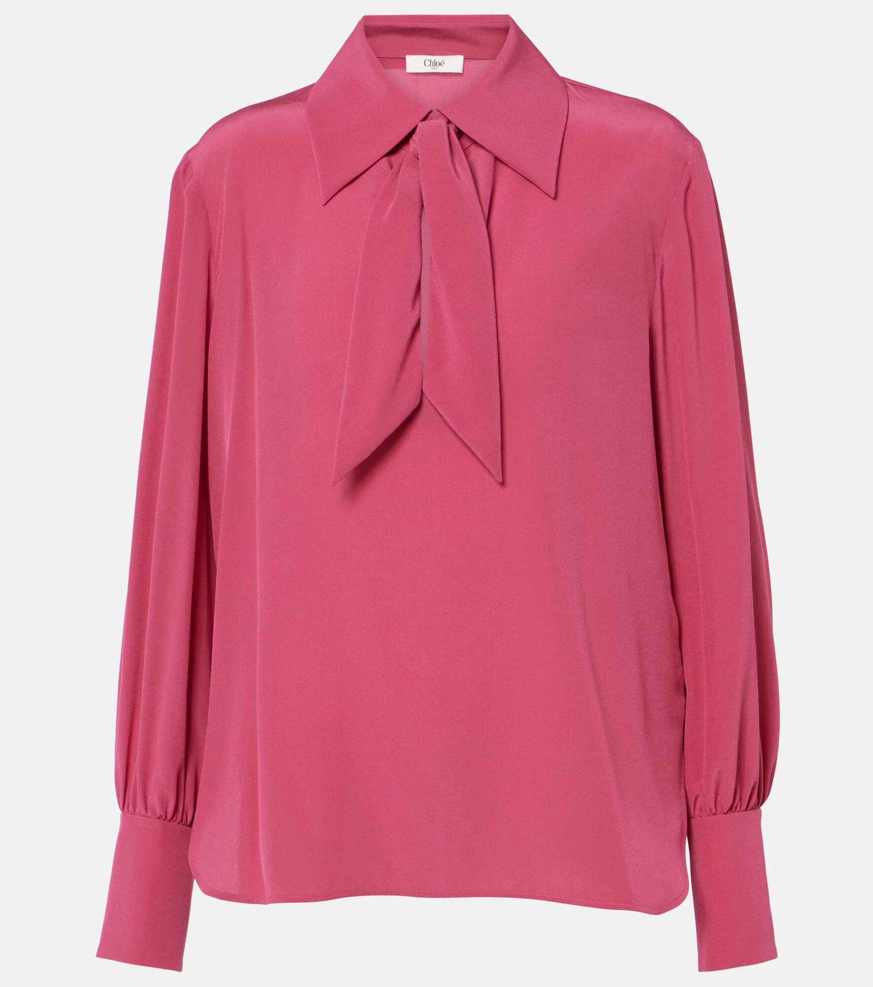 Tie-neck silk crêpe de chine blouse