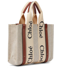 Chloé's Woody Small tote is the perfect companion for relaxed weekends. This leather-trimmed canvas style has a detachable shoulder strap and a surprisingly roomy interior with a slip pocket. Product Details - Material: fabric - Lining: fabric - Made in Italy - Designer color name: White Brown - Detachable, adjustable shoulder strap, Top handles - Internal details: internal slot pocket - Trim: calf leather - Comes with dust bag - Closure: open top - Item number: P00636857 Size & Fit - Height 20cm-8" - Width 26cm-10" - Depth 7,5cm-3" - Min. length shoulder strap 110cm-43.5" - Max. length shoulder strap 117cm-46"