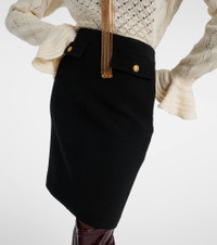 This Chloe midi skirt embodies the brand's unparalleled sophistication and refined craftsmanship. Crafted from soft wool-blend boucle, its design is tailored to a knee-length silhouette and finished with faux flap pockets and decorative gold-toned buttons. Product Details - Material: 89% wool, 10% polyamide, 1% elastane - Care instructions: dry clean - Made in Slovakia - Designer color name: Black - Item color: black - Lining: 100% silk - Closure: zipped side - Hardware color: gold - Pockets: faux pockets - Item number: P01067929 Size & Fit - True to size - Non-stretchy fabric - High-waisted - The model seen in the picture is 178cm-5'10" and wearing a size FR 36