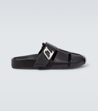 The Abubizz slippers are crafted from leather into a caged silhouette and feature silver-toned logo detailing. Finished with Christian Louboutin's iconic red soles, this pair makes every step you take a sophisticated one. Product Details - Sole: leather insole, rubber sole - Toe shape: square toe - Upper: leather - Comes with dust bags - Designer color name: Black - Comes with a box - Made in Italy - Item number: P00808128 Size & Fit - True to size - Half sizes please take the next size up - European sizes