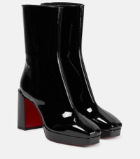 Lend an edgy touch to your ensembles with the Alleo ankle boots from Christian Louboutin. Crafted from patent leather, this pair features 90mm block heels, platforms, and square toes. Product Details - Upper: calf leather - Lining: fabric - Sole: leather insole and sole - Toe shape: square toe - Made in Italy - Designer color name: Black/Lin Black - Closure: zipped side - Comes with a box - Comes with dust bags - Item number: P00824940 Size & Fit - True to size - European sizes - 9cm-3.5" heel (size EU 38) - 2,5cm-1" platform (size EU 38)