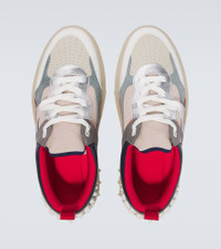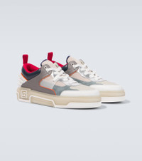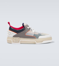 Inspired by '90's basketball sneakers, the Astroloubi seamlessly blends retro influences with Maison Christian Louboutin's signature details. A bold fusion of contrasting hues and textures, the design is finished with the brand's iconic spikes and renowned red soles. Product Details - Upper: leather - Lining: fabric - Sole: fabric insole, signature red rubber sole - Toe shape: almond toe - Made in Portugal - Includes: shoe box, dust bags, extra laces - Designer color name: Albatre/Smoke Grey - Trim: fabric - Closure: lace-up - Item number: P01008397 Size & Fit - True to size - European sizes