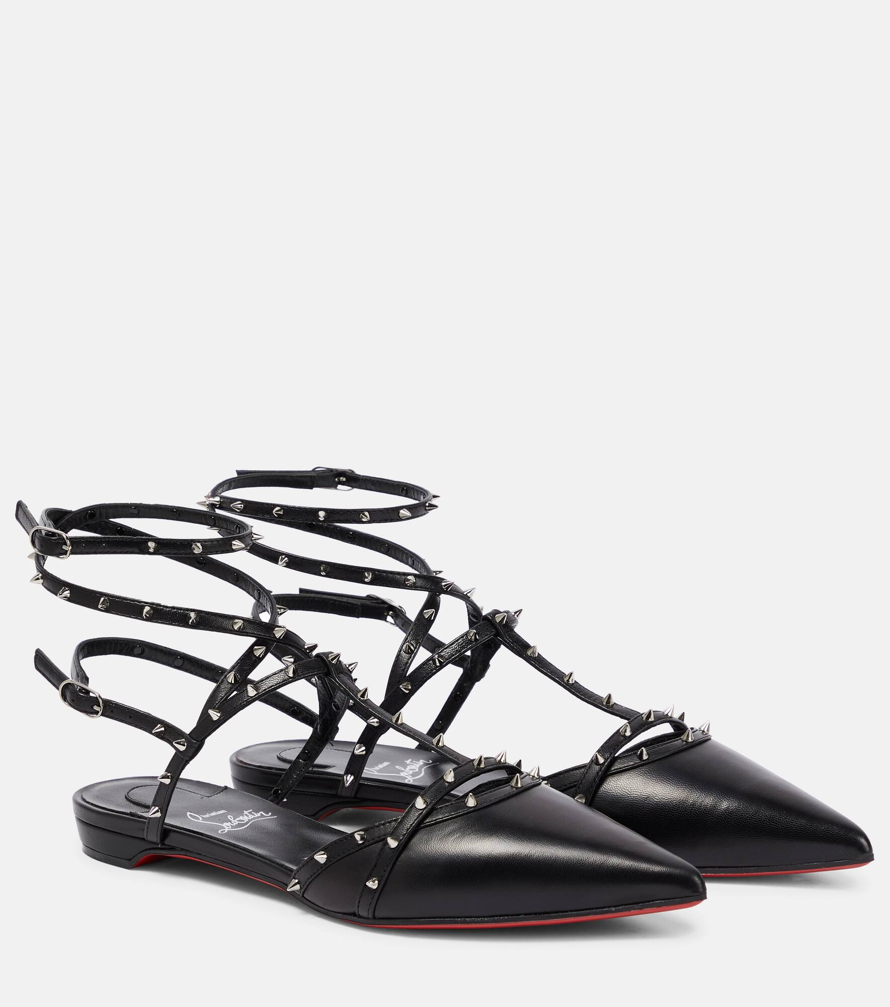 The Bombina Spikes leather flats from Christian Louboutin will suit a myriad of occasions. Slim, stud-embellished ankle straps characterize this style, which is finished with signature red lacquered soles. - upper: goat leather - lining: leather - trim: platinum-plated studs - sole: leather insole, signature red leather sole - pointed toe - buckle fastening - Made in Italy - comes with dust bag - comes with a box - Designer colour name: Black size & fit - True to size - European sizes