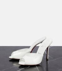 Christian Louboutin's Me Dolly mules are the stuff fashion tales are made of. Made from patent leather, this pair has rounded peep toes, stiletto heels, and signature lipstick-red soles. - upper: leather - lining: leather - sole: leather insole and sole - pointed open toe - Made in Italy - comes with a box - comes with dust bags - comes with extra heel tips - Designer colour name: Bianco/Lin Bianco size & fit - Fits slightly large to size - we recommend trying a half size smaller - Slightly wide at the toe - European sizes - 10cm-4" heel (size EU 38)