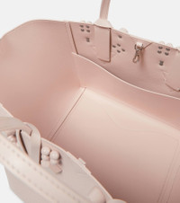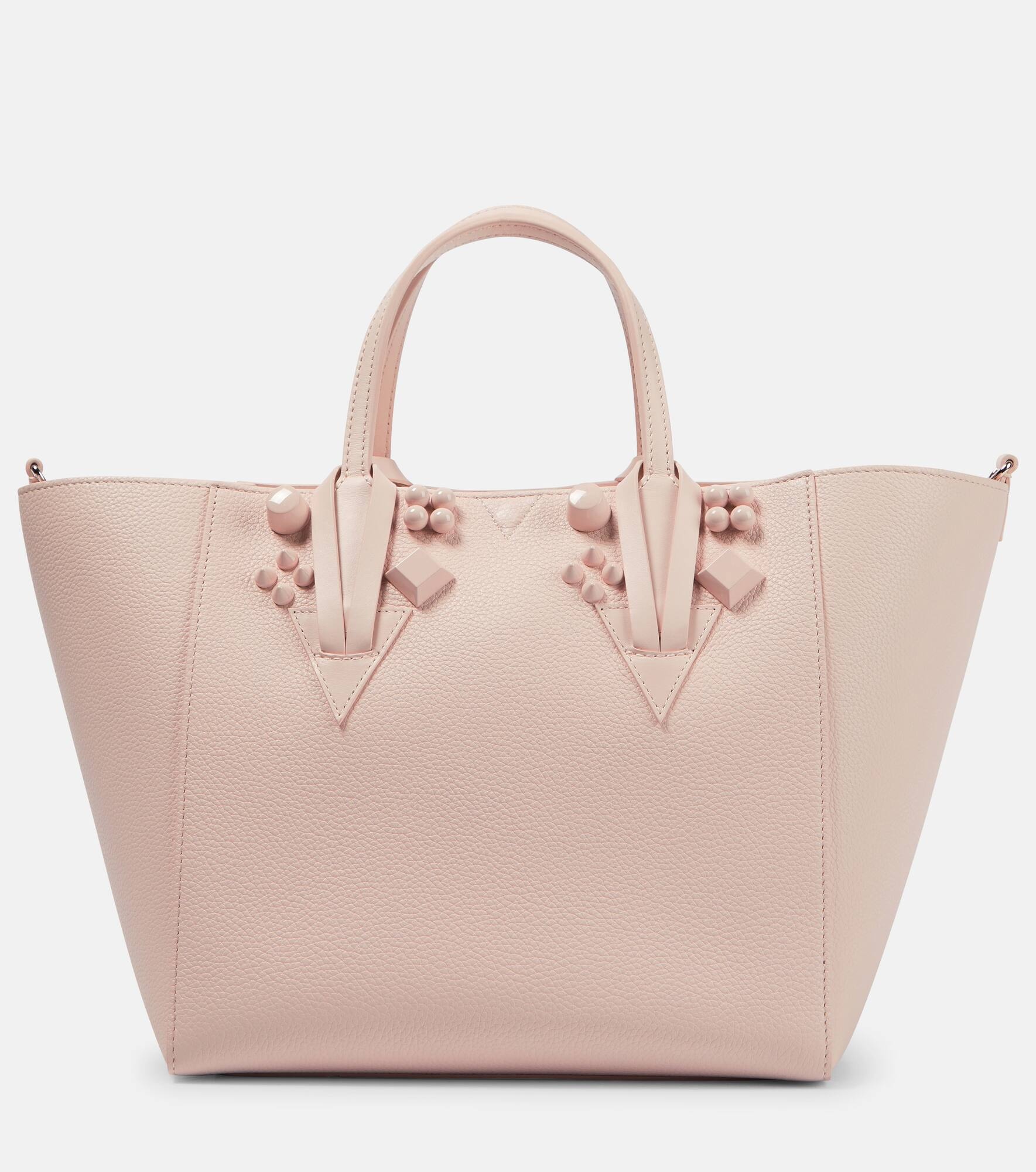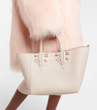 The Cabachic bag by Christian Louboutin reimagines the house’s iconic design with urban appeal. Featuring large crown pattern spikes and a trademark red base, this calfskin accessory has a spacious main compartment and interior pocket. Product Details - Detachable chain shoulder strap, Top handles - Internal details: internal slot pocket - Designer color name: Leche/Leche/Leche - Made in Italy - Comes with dust bag, Comes with a box - Material: cow leather - Item number: P00753278 Size & Fit - Height 23cm-9" - Max. width 44cm-17.5" - Depth 25cm-10" - Length of handles 30cm-12" - Min. length shoulder strap 83cm-32.5" - Max. length shoulder strap 97cm-38"