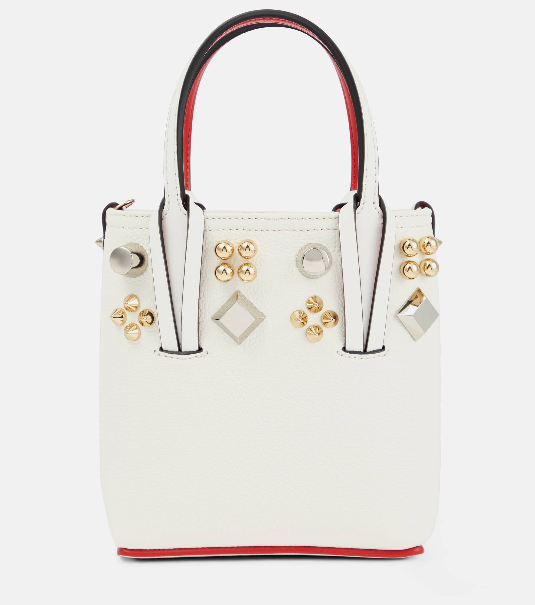 Christian Louboutin reworks the iconic Cabata tote, adorning it with oversized studs set in a regal motif. This design is crafted in Italy from grained white leather and features the label's signature lipstick-red accents - material: calf leather - trim: platinum-plated studs - internal details: leather lining - colour of fastening: gold - top handles - Made in Italy - comes with dust bag - Designer colour name: Bianco/Multi - lobster-clasp fastening