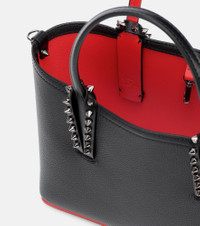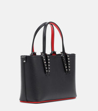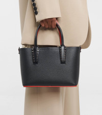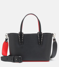 Christian Louboutin’s signature Cabata tote bag is reimagined as a compact weekend companion. Made from grained black calf leather, it has smooth top handles with spike-embellished trims and a long, adjustable strap that can be worn over the shoulder or across the body. Product Details - Detachable, adjustable shoulder strap, Top handles - Made in Italy - Designer color name: Black/Black - Comes with dust bag - Material: calf leather - Internal details: leather lining - Color of fastening: anthracite - Item number: P00513818 Size & Fit - Height 16.5cm-6.5" - Width 23.5cm-9.5" - Depth 8cm-3" - Min. length shoulder strap 111cm-43.5" - Max. length shoulder strap 125cm-49"