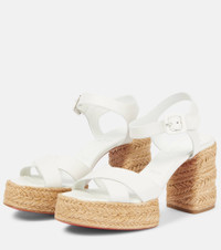The Calakala 70 espadrilles from Christian Louboutin feature thick leather straps with ankle buckle closures. Set on braided jute platform and block heels with the iconic red soles, this pair exudes effortless elegance with a touch of Mediterranean charm. Product Details - Upper: leather - Lining: leather - Sole: leather insole, signature red leather sole - Toe shape: almond open toe - Made in Spain - Includes: shoe box, dust bags - Designer color name: White - Item color: white - Closure: buckle-fastening ankle strap - Hardware color: silver - Item number: P01016248 Size & Fit - True to size - Half sizes please take the next size up - European sizes - 7cm-3" heel (size EU 38) - 3,5cm-1.5" platform (size EU 38)