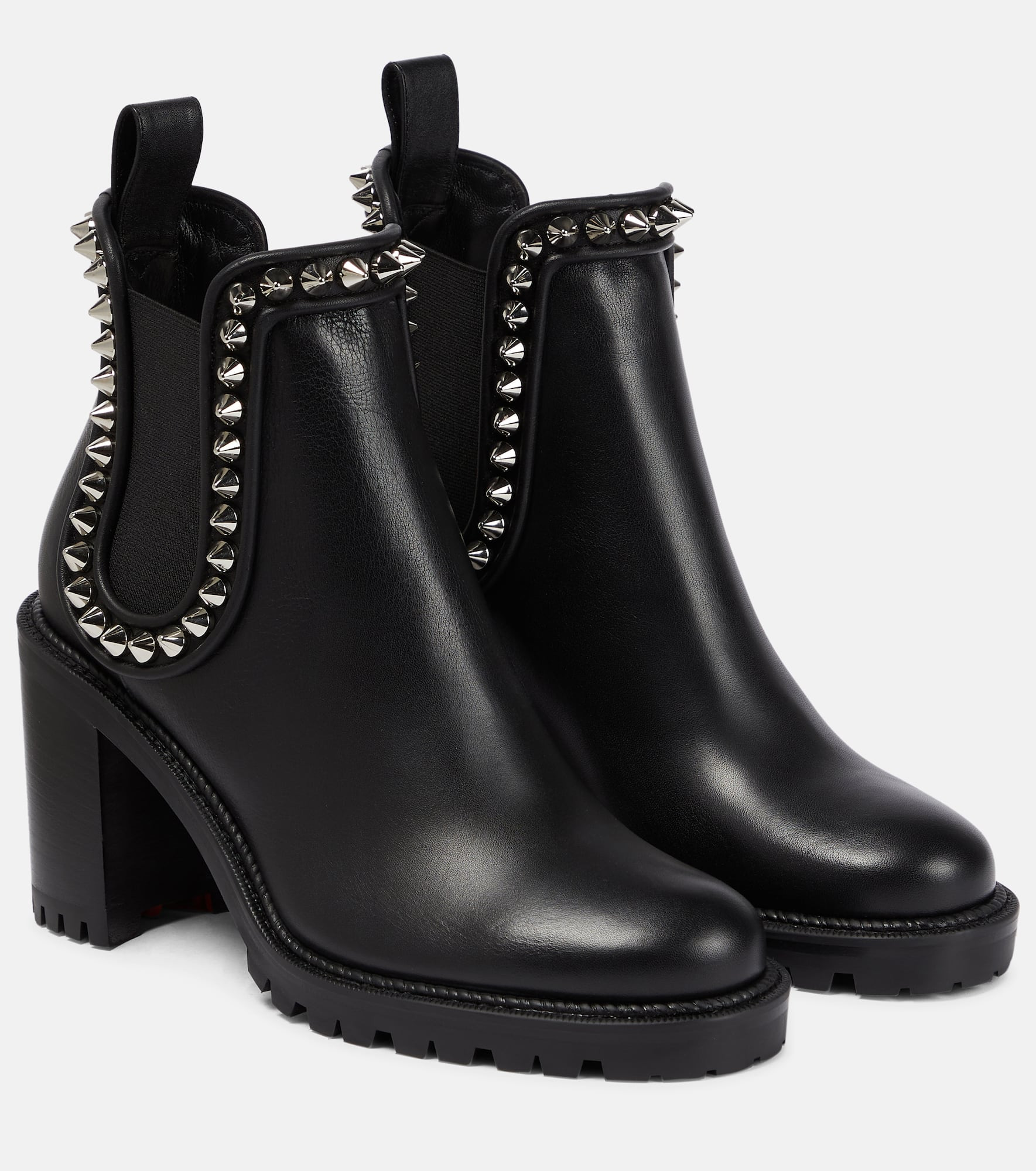 The Capahutta ankle boots from Christian Louboutin are distinguished by their stud embellishments. The smooth leather design has classic elasticated side inserts and gripped rubber heels made for strutting the streets. - upper: leather - lining: leather - trim: lamb leather, platinum-plated studs - sole: leather insole, rubber sole - round toe - elasticated sides - Made in Italy - comes with dust bags - comes with a box - Designer colour name: Black/Silver size & fit - True to size - European sizes - 7cm-3" heel (size EU 38) - 1,5cm-0.5" platform (size EU 38)