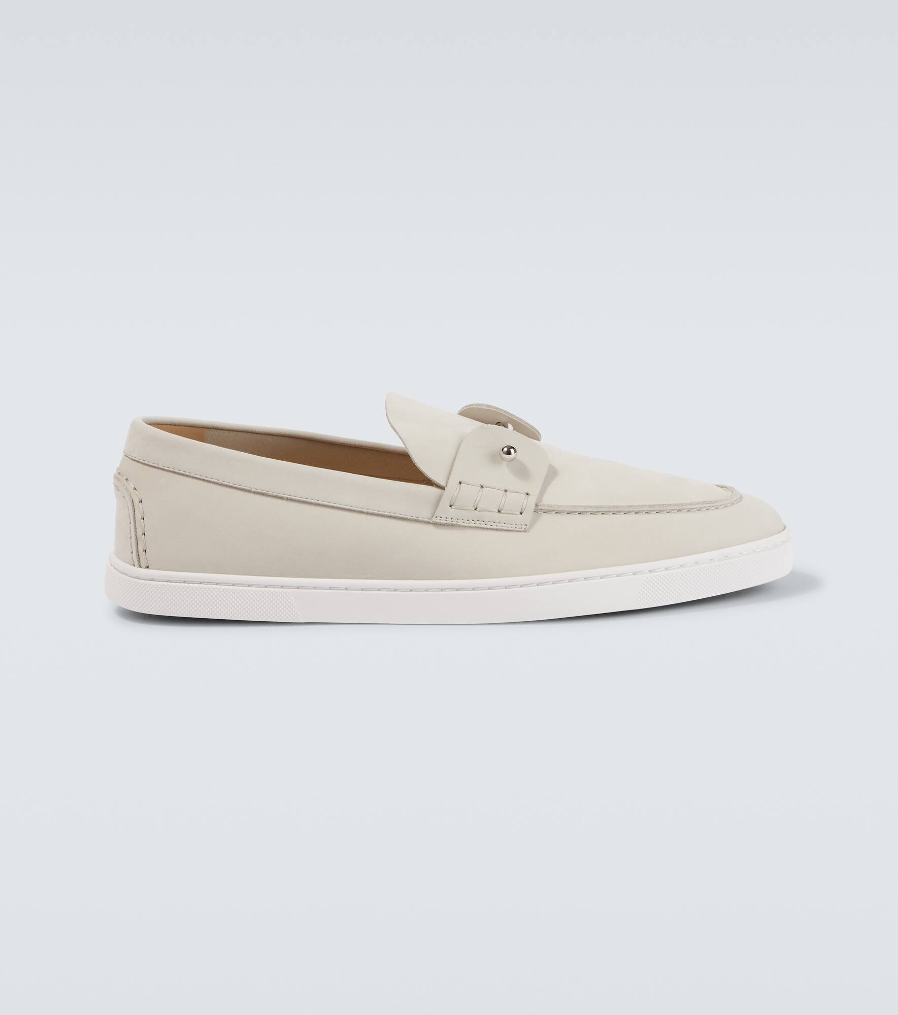 Prepare for summer days on the go with the Chambeliboat slip-on shoes from Christian Louboutin. Inspired by boat shoes, this style is crafted from nubuck leather and complete with metal collar pins across the vamps. Product Details - Upper: leather - Lining: leather - Sole: leather insole, signature red rubber sole - Toe shape: almond toe - Made in Italy - Includes: shoe box, dust bags - Designer color name: Albatre - Item color: white - Hardware color: silver - Item number: P01008392 Size & Fit - True to size - Half sizes please take the next size down - European sizes