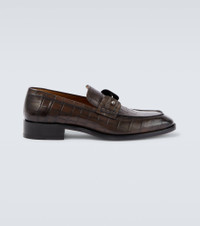 The Chambelimoc loafers from Christian Louboutin are crafted in Italy from croc-effect calf leather and finished with the maison's iconic red soles. This pair showcases a sophisticated, removable silver-toned collar pin that elegantly connects side straps. Product Details - Upper: calf leather - Lining: leather - Sole: leather insole, signatured red leather and rubber sole - Toe shape: almond toe - Made in Italy - Includes: shoe box, dust bag - Designer color name: Cosme - Item color: brown - Item number: P01067690 Size & Fit - True to size - Slightly narrow at the heel - European sizes