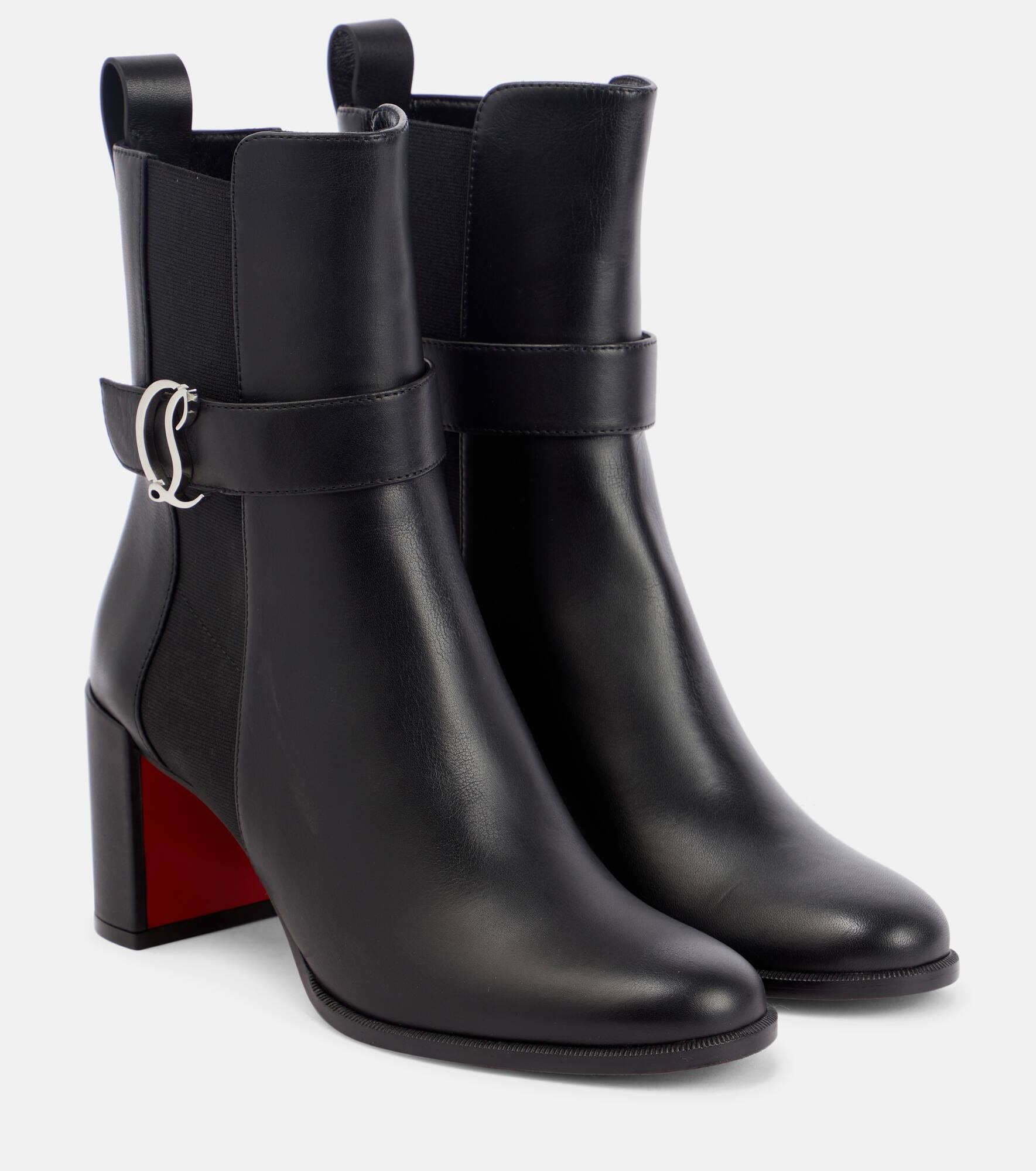 Casual yet elegant, the CL Chelsea Booty boots from Christian Louboutin are an upscale take on the classic Chelsea boot. They're made from smooth black leather with elasticated gussets and pull tabs, and finished with a silver-toned monogram. Product Details - Toe shape: round toe - Upper: calf leather - Sole: leather insole and sole - Lining: calf leather - Comes with dust bags - Designer color name: Black - Comes with a box - Made in Italy - Closure: elasticated sides - Item number: P00727826 Size & Fit - True to size - Slightly narrow - European sizes - 7cm-3" heel (size EU 38)