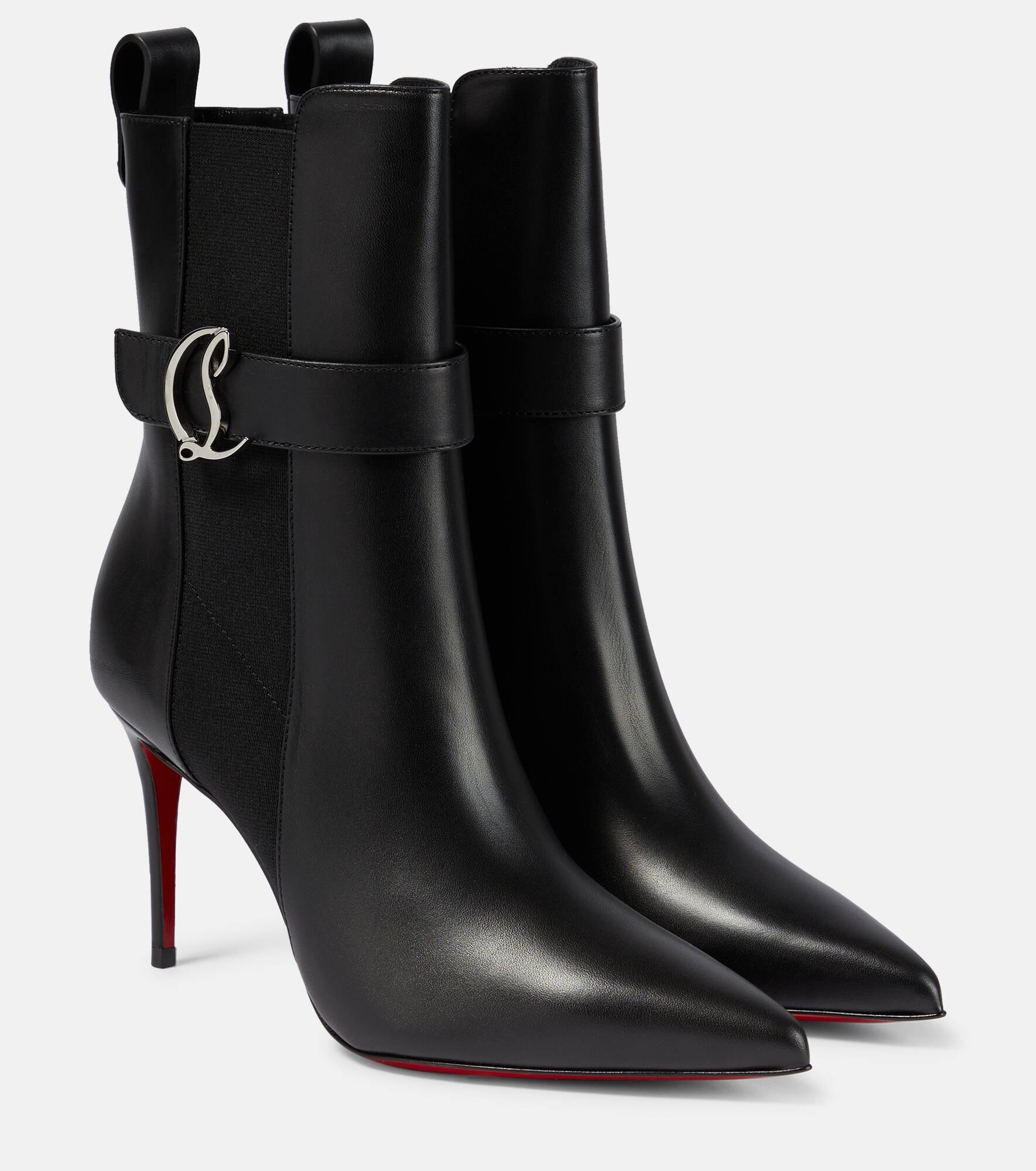 Timeless and sophisticated, Christian Louboutin's Chelsea ankle boots are a wear-forever piece. Made from black leather, the pointed-toe style is finished with elastic inserts, a heel tab, and a silver-tone CL logo monogram. Product Details - Comes with extra heel tips - Sole: leather insole and sole - Toe shape: pointed toe - Comes with a box - Designer color name: Black - Upper: leather - Made in Italy - Trim: fabric - Comes with dust bags - Item number: P00813960 Size & Fit - True to size - Slightly narrow - European sizes - 8,5cm-3.5" heel (size EU 38)