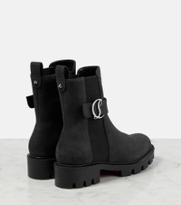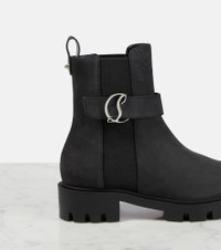 These Chelsea ankle boots from Christian Louboutin are made from suede in an almond-toed silhouette with elastic inserts on the sides. This style is set atop lug soles and is finished with silver-tone CL monogram. Product Details - Sole: leather insole, rubber sole - Toe shape: round toe - Upper: leather - Comes with dust bags - Designer color name: Black - Comes with a box - Made in Italy - Trim: fabric - Item number: P00813964 Size & Fit - True to size - Slightly narrow - European sizes - 2cm-1" platform (size EU 38) - 4cm-1.5" wedge heel (size EU 38)