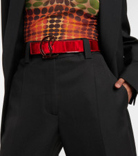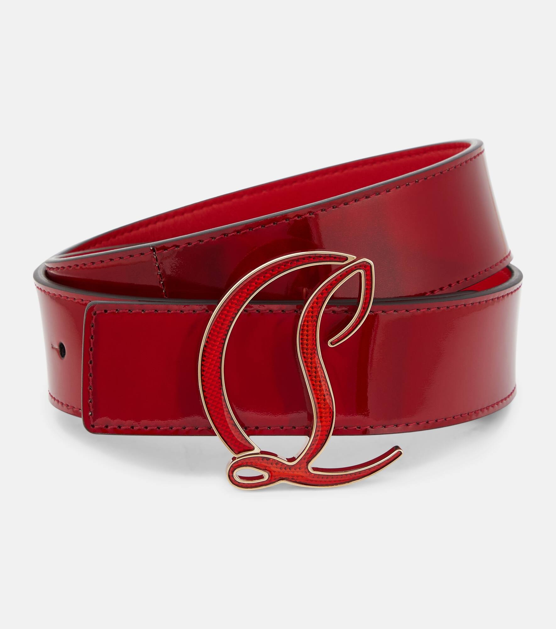 This wide leather belt from Christian Louboutin is a must-have for the label's devotees. It's made from smooth black leather with a signature red inner, and has an ornate CL monogram buckle. Product Details - Closure: slot-tab fastening - Material: calf leather - Comes with a box, Comes with dust bag, Contains non-textile parts of animal origin - Made in Italy - Adjustable belt strap - Item number: P00753267 Size & Fit - Width 3,5cm-1.5" - Buckle width 6cm-2.5"