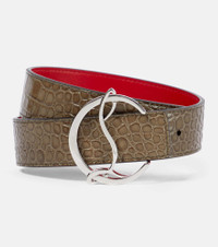 Inflect your everyday look with a subtle sense of brand recognition courtesy of Christian Louboutin's reversible leather belt. Crafted in Italy from croc-effect brown leather, it features a signature red-coated reverse and is illuminated by the label's CL logo plaque. - material: leather, brass - colour of fastening: silver - Made in Italy - comes with dust bag - Designer colour name: Silex/Silver