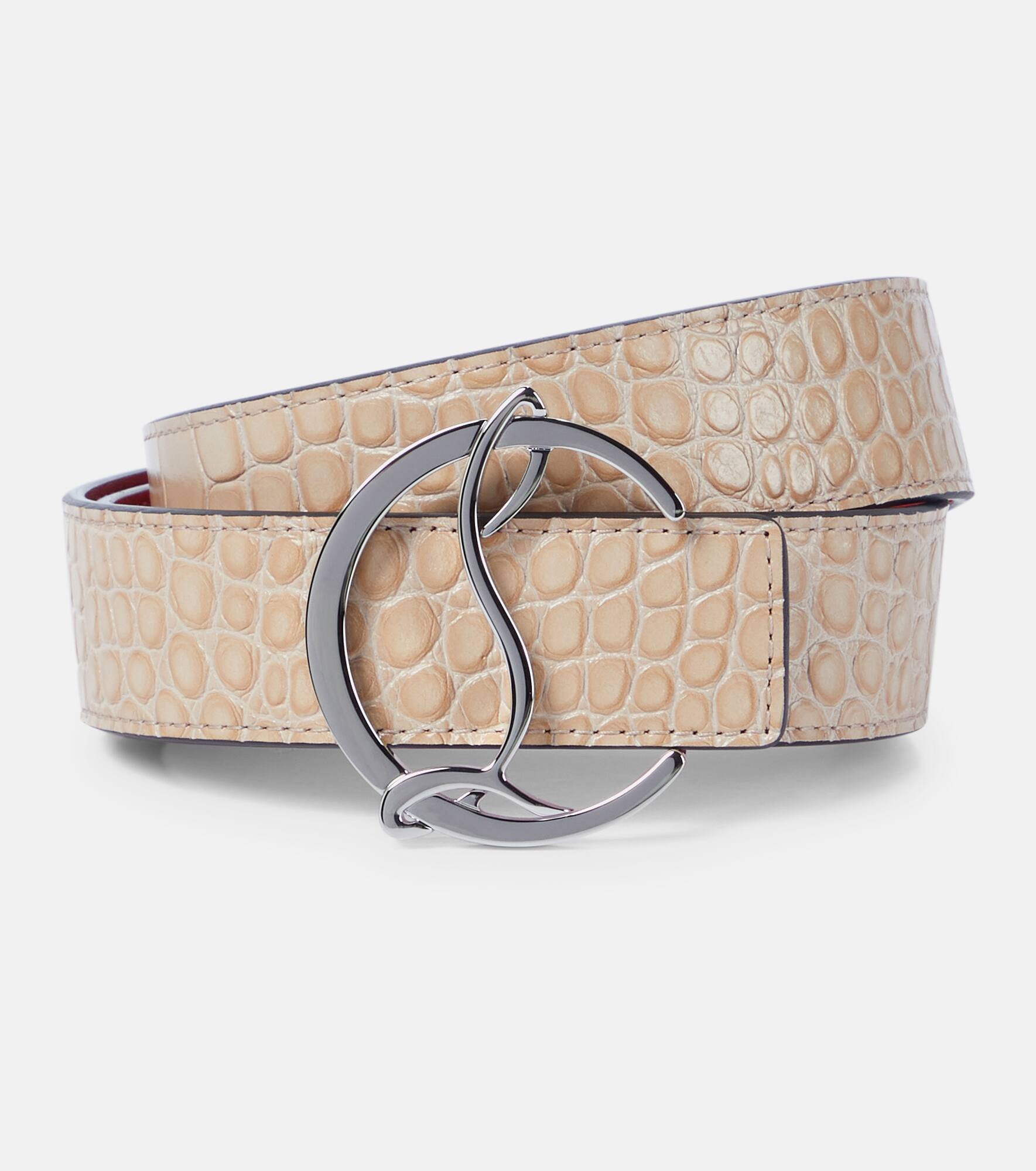 Inflect your everyday look with a subtle sense of brand recognition courtesy of Christian Louboutin's reversible leather belt. Crafted in Italy from croc-effect beige leather, it features a signature red-coated reverse and is illuminated by the label's CL logo in shining silver-tone hardware. - material: calf leather - internal details: leather lining - colour of fastening: silver - Made in Italy - comes with dust bag - Designer colour name: Nougat/Silver