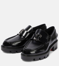 Made from polished leather, Christian Louboutin's Moc Lug loafers are set on chunky rubber soles and are detailed with silver-toned metal CL logo plaques. Product Details - Upper: leather - Lining: leather - Sole: leather insole and sole - Toe shape: pointed toe - Made in Italy - Designer color name: Black/Lin Black - Comes with dust bag - Comes with a box - Trim: glass - Item number: P00727829 Size & Fit - True to size - European sizes - 4cm-1.5" heel (size EU 38) - 2cm-1" platform (size EU 38)