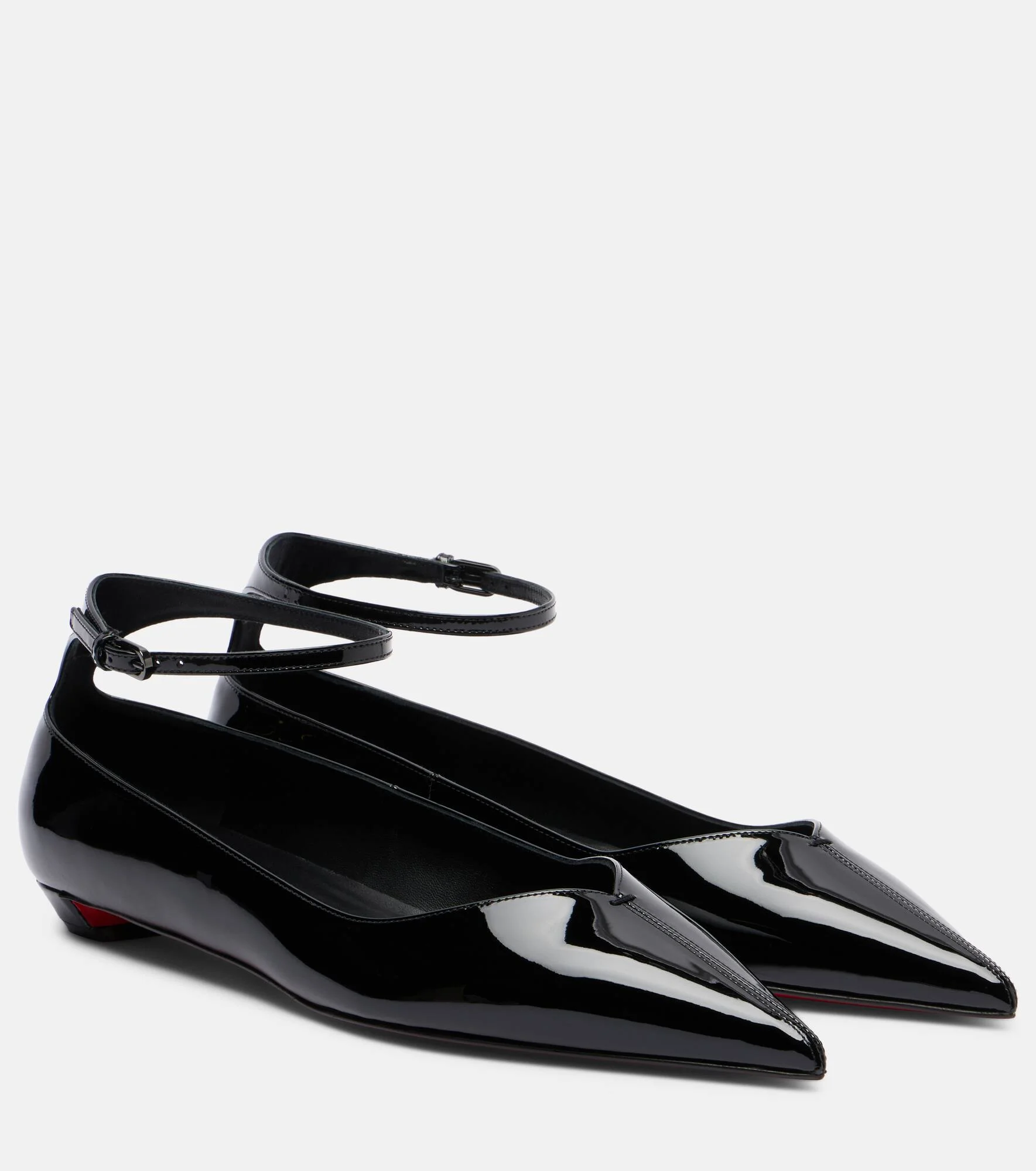 The Erozeena ballet flats by Christian Louboutin are Italian-crafted from patent leather. Finished with the house's iconic red soles, this pair makes every step you take a sophisticated one. Product Details - Upper: calf leather - Lining: leather - Sole: leather insole, signatured red leather and rubber sole - Color: black - Toe shape: pointed toe - Made in Italy - Includes: dust bag, shoe box - Designer color name: Black/Lin Black - Item number: P01119996