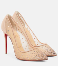 Bring sparkle to evening looks with Christian Louboutin's Follies pumps. Coated in crystals, they're made from panels of mesh and leather. Set on stiletto heels, they're finished with the label's lipstick-red soles. Product Details - Comes with extra heel tips - Sole: leather insole, signature red leather sole - Comes with a box - Lining: fabric - Trim: goat leather - Designer color name: Version Light Silk - Made in Italy - Upper: fabric - Toe shape: pointed toe - Comes with dust bags - Item number: P00696463 Size & Fit - True to size - European sizes - 10cm-4" heel (size EU 38)