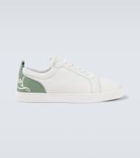 Crafted in Italy from leather, the Fun Louis Junior sneakers from Christian Louboutin features leather insoles on almond-toe silhouettes. This design is finished with the brand's signature red soles. Product Details - Upper: calf leather - Lining: fabric - Sole: leather insole, signature red rubber sole - Toe shape: almond toe - Made in Italy - Includes: shoe box, dust bags, extra laces - Designer color name: White/Manuka - Item color: white - Closure: lace-up - Item number: P01050856 Size & Fit - True to size - Half sizes please take the next size down - European sizes