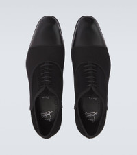 The Greggory Oxford shoes lend your outfits that final sophisticated polish with their leather trims and tonal panels. Finished with Christian Louboutin's iconic red soles, this pair makes every step you take a sophisticated one. Product Details - Upper: calf leather, fabric - Lining: leather - Sole: leather insole, leather and rubber sole - Color: black - Toe shape: almond toe - Made in Italy - Includes: dust bag, extra laces, shoe box - Designer color name: Black - Item color: black - Item number: P01112803 Size & Fit - True to size - Slightly narrow - European sizes