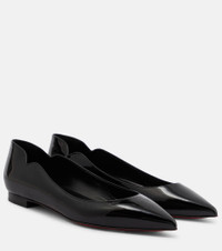The Hot Chick ballet flats from Christian Louboutin have all the glamour of the iconic silhouette and fit perfectly in your everyday rotation. The black leather style features pointed toes, signature notches, and barely-there heels. Product Details - Lining: leather - Sole: leather insole and sole - Toe shape: pointed toe - Upper: leather - Comes with a box - Designer color name: Black/Lin Black - Made in Italy - Comes with dust bag - Item number: P00727893 Size & Fit - Fits large to size - we recommend trying one size smaller - European sizes