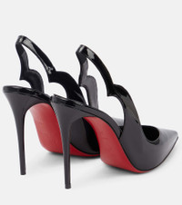 A modern interpretation of classic pumps, the Hot Chick 100 pumps from Christian Louboutin are a timeless investment. Made from black leather, they're framed with a notched collar and iconic lacquered soles for unparalleled sophistication. Product Details - Lining: leather - Sole: leather insole, signature red leather sole - Comes with a box - Closure: ankle strap - Made in Italy - Designer color name: Black/Lin Black - Comes with dust bag - Comes with extra heel tips - Upper: calf leather - Toe shape: pointed toe - Item number: P00696504 Size & Fit - True to size - Narrow at the toe - European sizes - 10cm-4" heel (size EU 38)