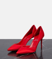 Step into the vibrant silk-satin construction of Christian Louboutin's iconic Iriza pumps. Boasting an asymmetric d'Orsay silhouette that spotlights the house's affinity for sharp lines, this pointed-toe style is set atop 85mm heels. Product Details - Upper: fabric - Comes with dust bag - Comes with extra heel tips - Sole: leather insole, signature red leather sole - Toe shape: pointed toe - Comes with a box - Made in Italy - Item number: P00813923 Size & Fit - Fits slightly large to size - we recommend trying a half size smaller - European sizes - 8,5cm-3.5" heel (size EU 38)
