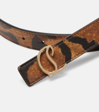 This belt from Christian Louboutin is made in Italy from leopard-printed leather. The design has a statement logo buckle in a golden tone. Product Details - Material: calf leather - Lining: leather - Made in Italy - Designer color name: Brown/Loubi/Gold - Item color: brown, black - Hardware color: gold - Includes: dust bag - Item number: P01082960 Size & Fit - Width 2,5cm-1" - Buckle width 3cm-1"