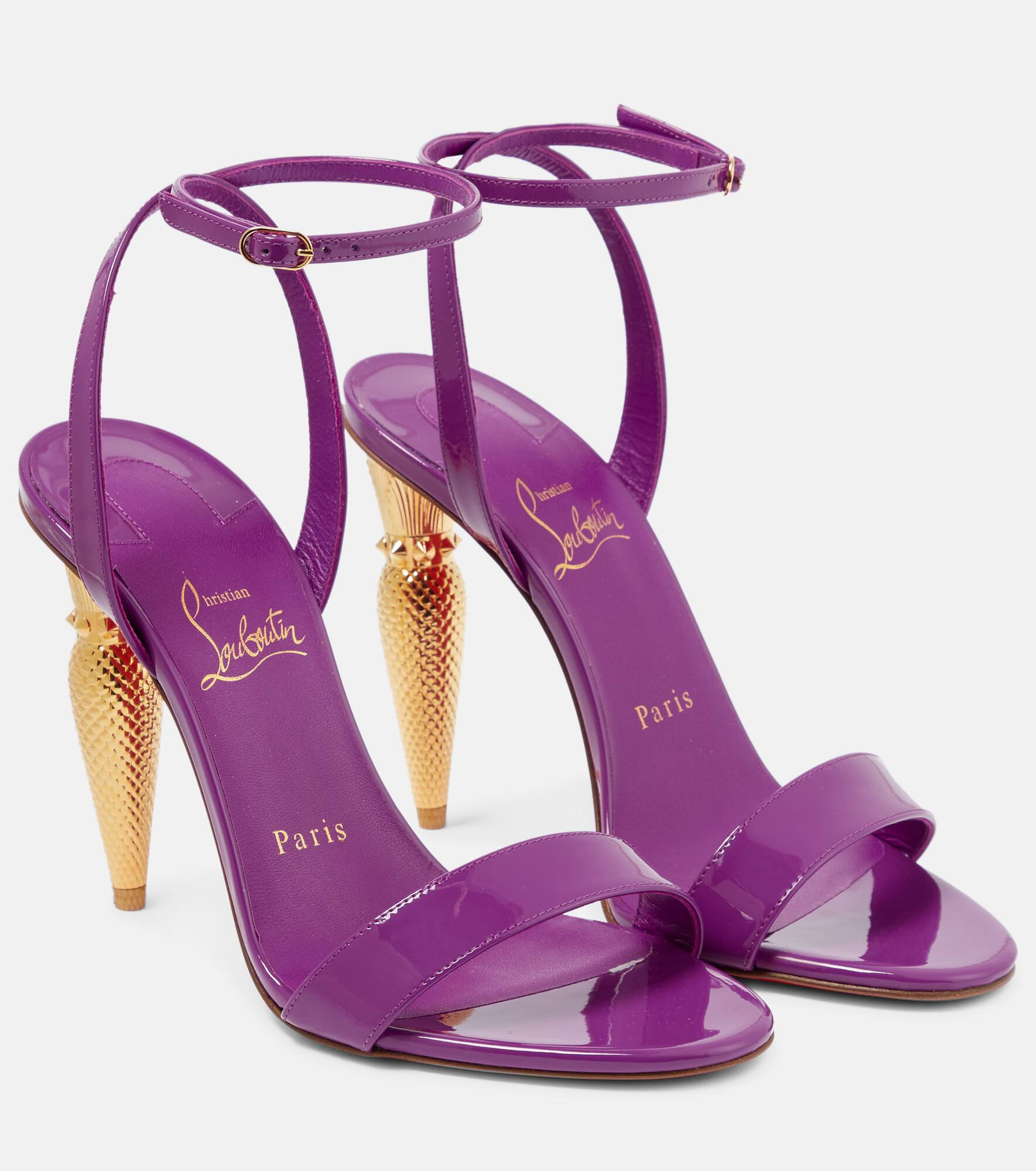 Make stylish strides in the Lipqueen patent leather sandals by Christian Louboutin. They're set atop ornate 100mm golden pillars with ankle strap fastenings guaranteed to elevate your look. - upper: cow leather - sole: leather insole, signature red leather sole - round open toe - buckle-fastening ankle strap - Made in Italy - comes with a box - comes with dust bags - comes with extra heel tips - Designer colour name: Kismet/Lin Kism/Gold size & fit - Fits slightly small to size - we recommend trying a half size larger - European sizes - 10cm-4" heel (size EU 38)