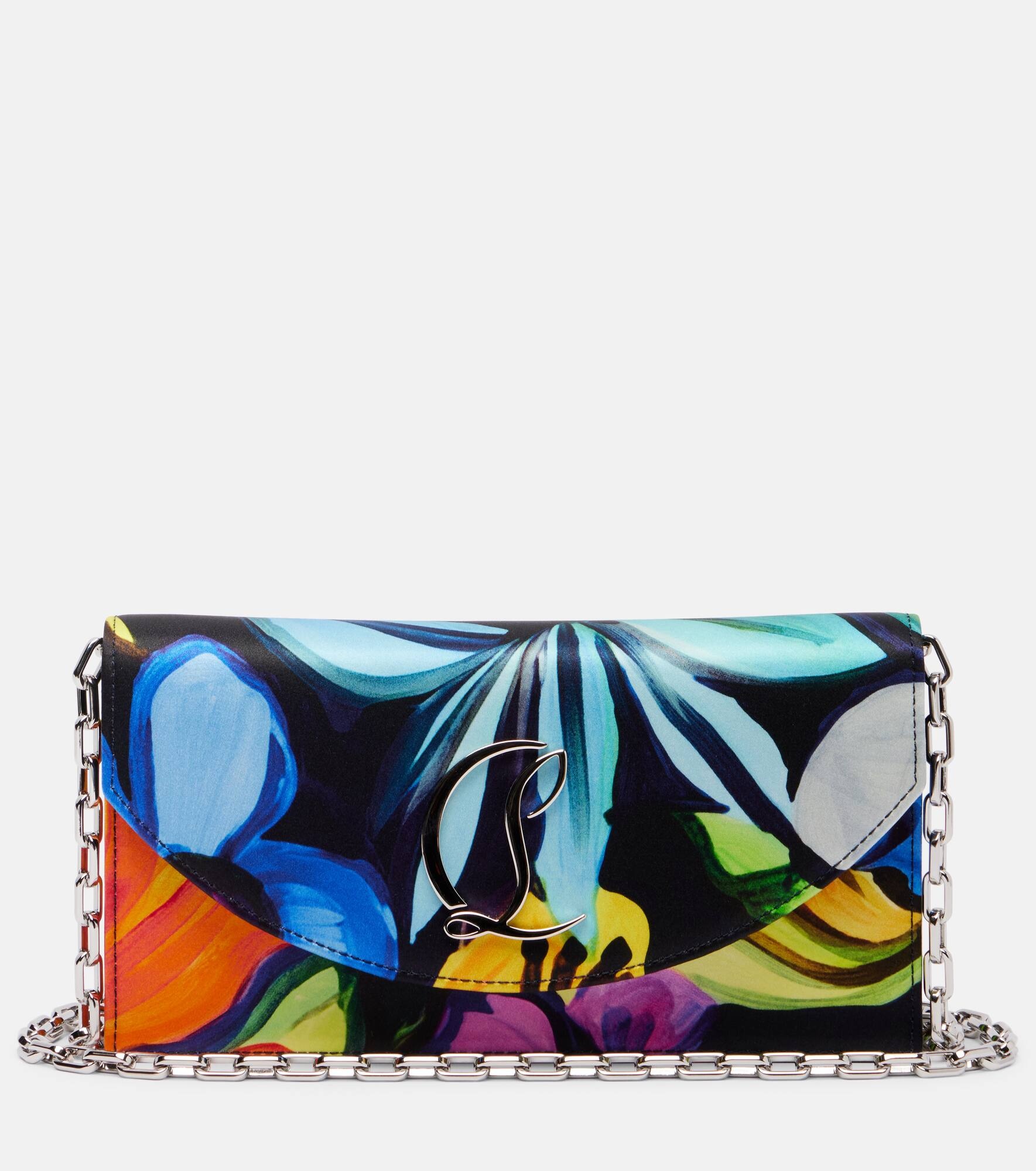 Crafted in Italy from satin, the Loubi54 clutch from Christian Louboutin showcases the CL monogram and a floral print all over. This design features an adjustable chain shoulder strap and internal card slots and pockets. Product Details - Material: satin - Lining: leather - Made in Italy - Designer color name: Multi/Silver - Item color: multicolor - Hardware color: silver - Internal details: Card slots, internal slot pocket - Closure: magnetic fastening - Detachable chain shoulder strap - Includes: dust bag, box - Item number: P01039031 Size & Fit - Height 12cm-4.5" - Width 22cm-8.5" - Depth 4cm-1.5" - Chain length 115cm-45.5"