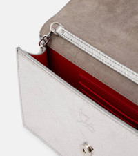 Loubi54 embellished metallic cracked-leather shoulder bag Silver