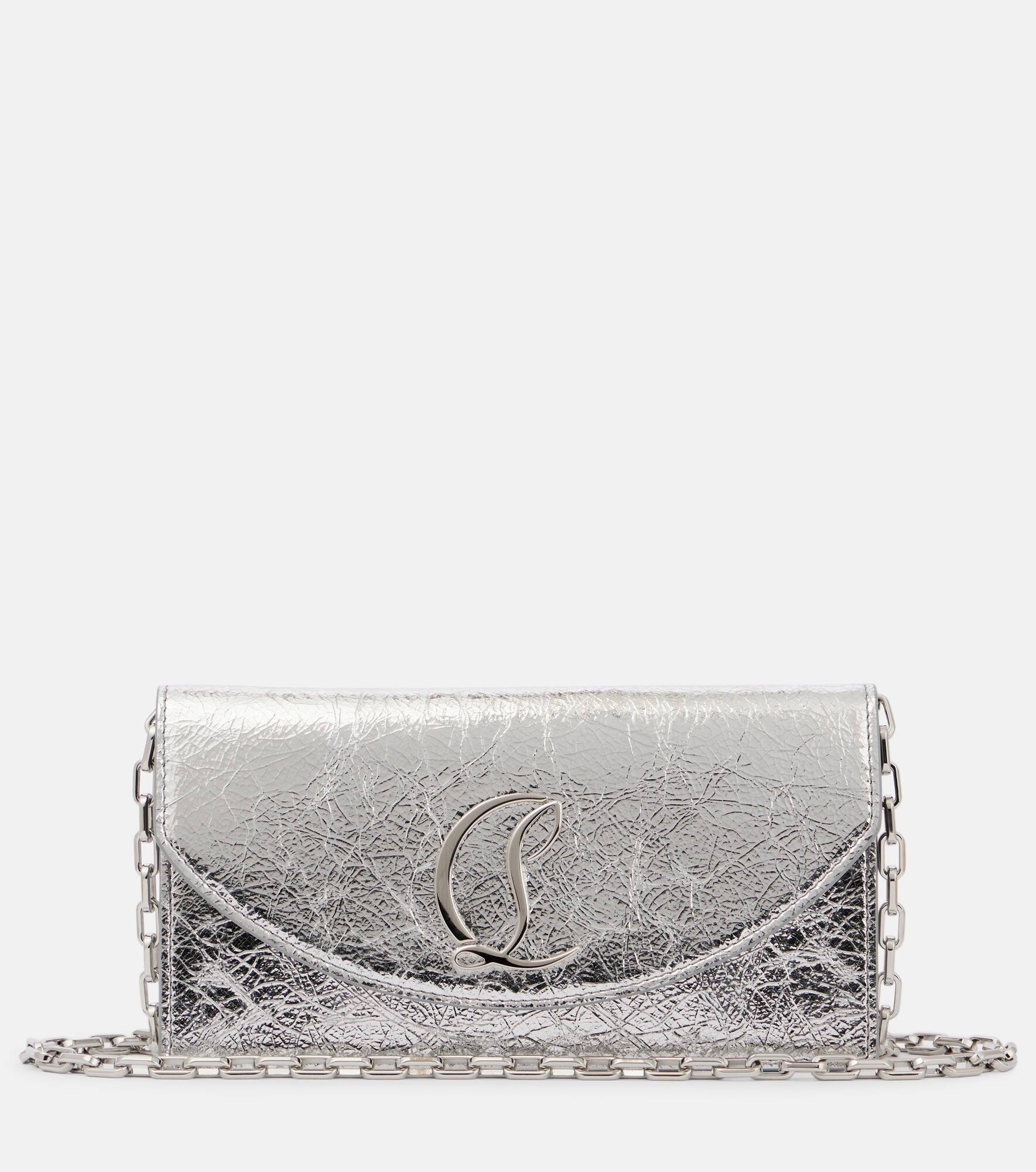 Occasions are all the more memorable with the Loubi54 clutch from Christian Louboutin. The design is crafted from metallic, laminated leather and comes with a chain for versatile carrying. Product Details - Material: leather - Lining: leather - Made in Italy - Designer color name: Silver - Item color: silver - Internal details: single compartment, Card slots, internal slot pocket - Detachable chain shoulder strap - Hardware color: silver - Item number: P01039033 Size & Fit - Height 11,5cm-4.5" - Width 22cm-8.5" - Depth 4,5cm-2" - Chain length 115cm-45.5"