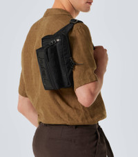 Product Details - Material: fabric - Lining: fabric - Made in Italy - Designer color name: Black/Black/Black - Internal details: internal slot pocket - Closure: two-way zipped top - Zipped front pocket - Includes: dust bag - Adjustable waist strap - Item number: P00942451 Size & Fit - Adjustable size - Height 13cm-5" - Width 23cm-9" - Max. depth 7cm-3" - Min. circumference 96cm-38" - Max. circumference 142cm-56"